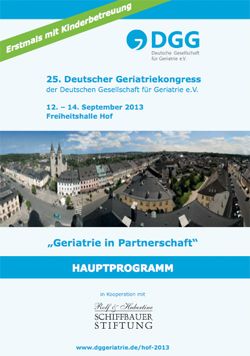 (05.09.2013) In einer Woche beginnt er – der 25. Jahreskongress der Deutschen Gesellschaft für Geriatrie. Ab sofort können Sie das vollständige Programm mit Informationen rund um alle Termine, Inhalte und Formalia herunterladen. Während des Kongresses selbst werden zudem gedruckte Hauptprogramme verteilt. Die DGG wünscht Ihnen schon jetzt eine anregende wie produktive Zeit in Hof!