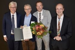 Foto (v.l.): DGG-Präsident Professor Jürgen M. Bauer, Preisträger Professor Kilian Rapp, DGG President-elect Professor Hans Jürgen Heppner sowie DGG Past President Privatdozent Dr. Rupert Püllen.