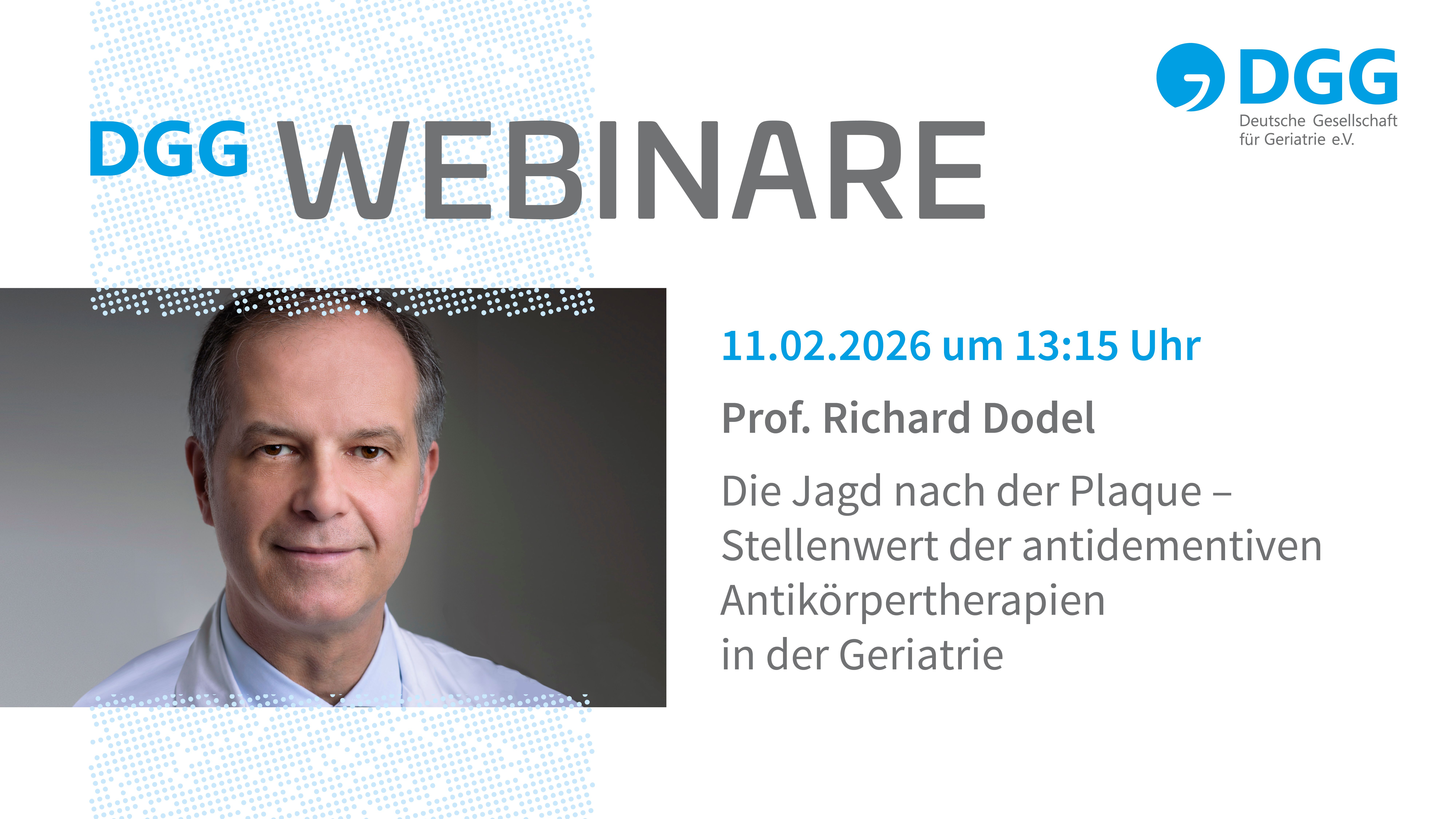 Jetzt schon vormerken: am Mittwoch startet um 13:15 Uhr das DGG-Webinar im Februar. Prof. Dr. Richard Dodel referiert zum Thema Die Jagd nach der Plaque – Stellenwert der antidementiven Antikörpertherapien in der Geriatrie.