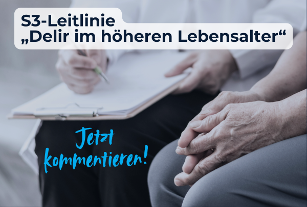Jetzt teilnehmen und kommentieren: Die neue S3-Leitlinie „Delir im höheren Lebensalter“ ist noch bis zum 9. April zur öffentlichen Konsultation auf der AWMF-Website verfügbar. „Die Beteiligung von möglichst vielen Expertinnen und Experten ist relevant, um letztendlich mithilfe der neuen Empfehlungen den Austausch und die Verbesserung der Versorgung von älteren Menschen mit Delir zu fördern“, heißt es seitens der Autorinnen und Autoren. Entstanden ist die transsektoral umsetzbare, interdisziplinär-interprofessionelle Leitlinie zu Delir-Prävention, -Diagnostik und -Therapie beim alten Menschen unter der Federführung der Deutschen Gesellschaft für Gerontopsychiatrie und -psychotherapie (DGGPP) sowie der Deutschen Gesellschaft für Geriatrie (DGG). Hier geht es zur Leitlinien-Kommentierung.